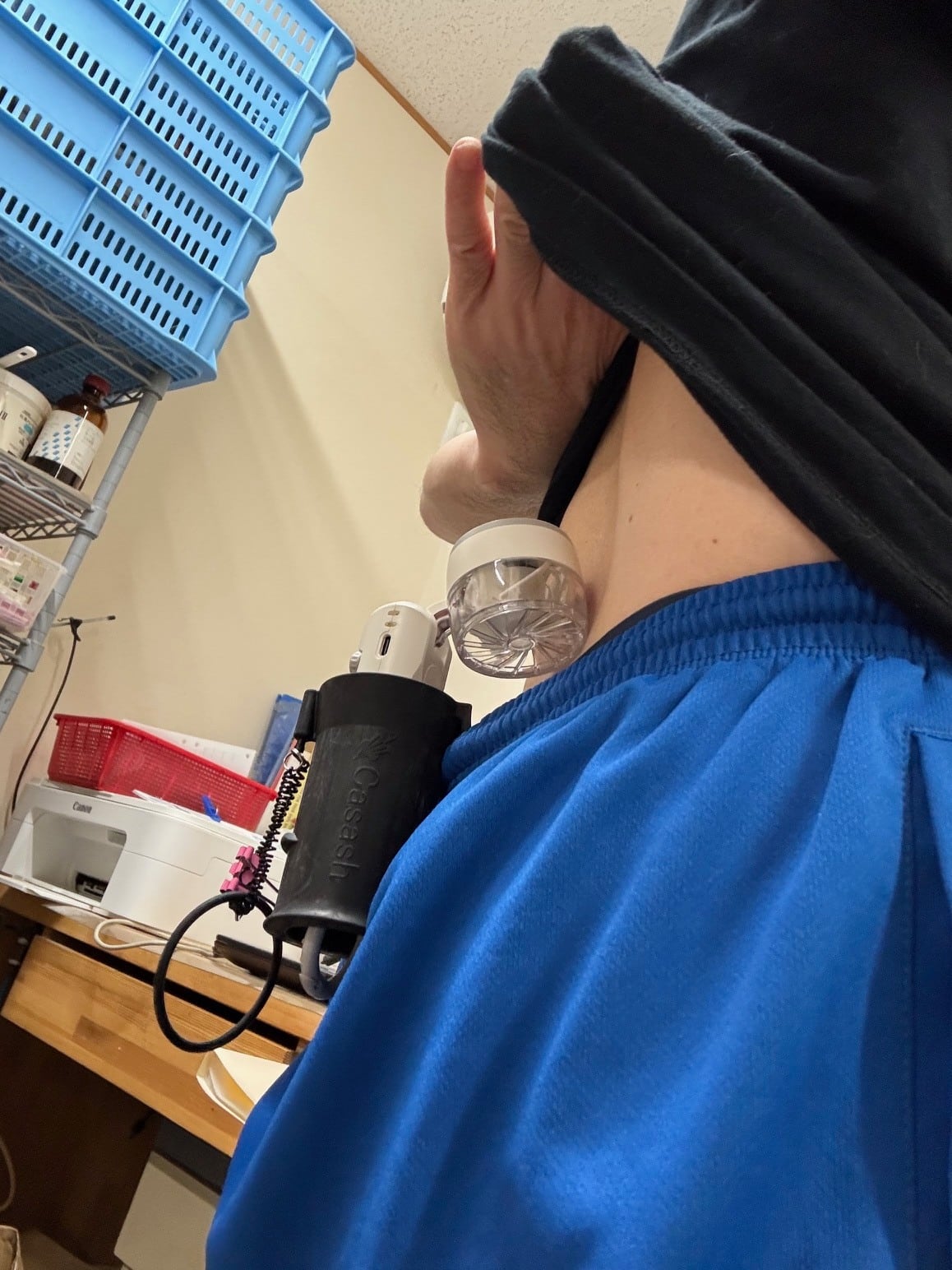 ②フックの部分をズボンなどに引っ掛ける事で、手持ちハンディファンも簡易空調ファンのよう に使用する事ができます。
